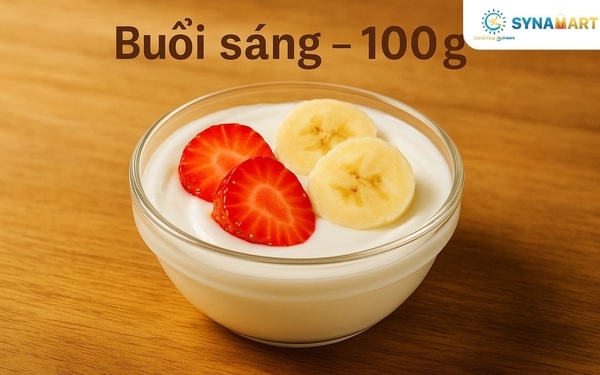 ➡️ Gợi ý: Ăn 1 hũ sữa chua không đường (~100g) với vài lát dâu tây hoặc nửa quả chuối vào buổi sáng.