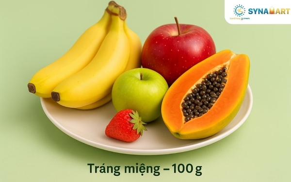 ➡️ Gợi ý: Sau bữa trưa, ăn 1 quả chuối chín hoặc vài lát đu đủ (~100g) làm tráng miệng.