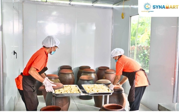 - Ngâm ủ bằng chum đất Phù Lãng: Loại chum được làm thủ công từ đất, nung bằng củi – rất lý tưởng cho các sản phẩm lên men, giữ được hương vị thuần khiết.