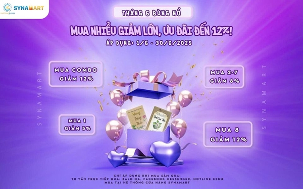 Với mong muốn tiếp tục đồng hành cùng khách hàng mùa hè này, SYNAMART gia hạn ưu đãi hấp dẫn – mua càng nhiều, giảm càng sâu, lên đến 12% cho tất cả đơn hàng gồm sản phẩm lẻ và combo.