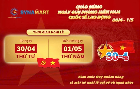 Công ty Cổ Phần Thương Mại và Dịch Vụ SYNAPS xin thông báo lịch nghỉ lễ nhân dịp Giải phóng miền Nam 30/4 và Quốc tế Lao động 1/5 như sau: